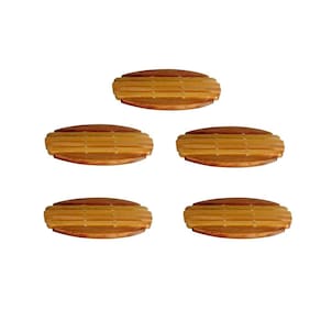 Kit 5 Descanso De Panela De Pau Madeira Modelo Oval 21x16 Cm