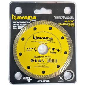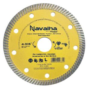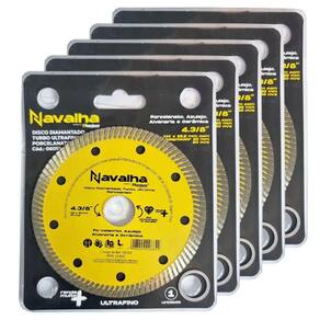 Kit com 5 Discos de Corte Diamantado Turbo 110mm Ultra fino Porcelanato Titanium Disco com alta concentração de diamantes, indicado para corte de porcelanato, azulejo alvenaria e cerâmica. Para uso com Serra Mármore Makita e outras marcas . - Marca: Navalha/ Titanium - Referência: TT6055-5X - Kit com 5 Discos - Diâmetro externo: 110 mm 4.3/8 polegadas - Diâmetro do furo do disco: 20mm - Acompanha anel para 16mm - Espessura: 1mm - Alta concentração de diamante - Indicado para corte de porcelanato, azulejo alvenaria e cerâmica - Para uso com Serra Mármore Makita e outras marcas - Rotação máxima: 13.800 rpm - Peso bruto: 78 gramas - : 90 dias contra defeitos de fabricação Marca: Não Informado