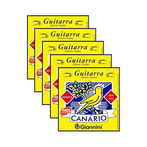 Kit 5 Encordoamento Guitarra Giannini Canário GESGT9 0.009 Aço