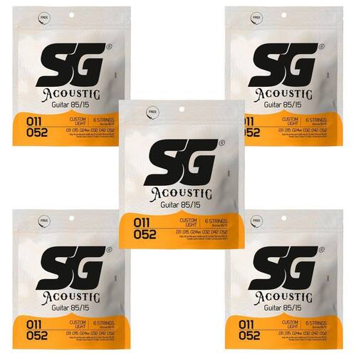 Kit 5 Encordoamento Violão Aço 011 Bronze 85 15 SG 011 052