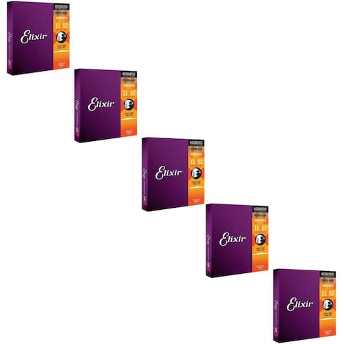 Kit 5 Encordoamentos Elixir Violão Aço 011-052 Phosphor Bronze 16027 Made in USA