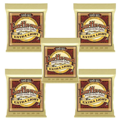 Kit 5 Encordoamento Violão Aço Ernie Ball 010 Earthwood Extra Leve Bronze 80/20 2006