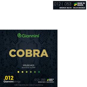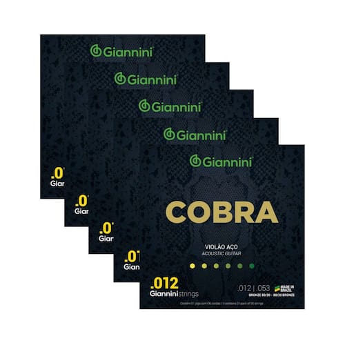 Kit 5 Encordoamento Violão Giannini Aço Cobra Bronze CA82L 80/20 0.012"
