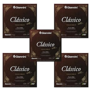 Kit 5 Encordoamento Violão Nylon Giannini Clássico T. Média