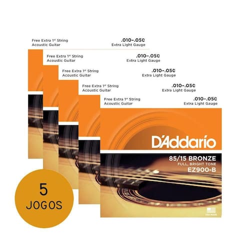 Encordoamento 0.10 Para Violão EZ900-B D Addario As cordas 85/15 Great American Bronze têm som brilhante e com muito sustain. As Great American Bronze Combinam o brilho das 80/20 Bronze com as carcterísticas de durabilidade das Phosphor Bronze. Especificações: - Modelo: EZ 900 - Material: Bronze - Ideal para violões - Quantidade de cordas: 6 - Espessura: 0,10 Marca: Não Informado