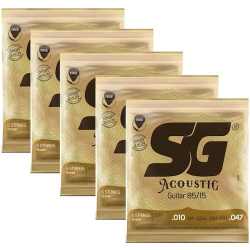Encordoamento Violao SG 6685 .010-.047 Aco - Leve O Encordoamento de violao SG 010 sao cordas resistentes, que garantem o brilho das notas musicais sempre com a afinacao precisa. Feita para violoes oacoo, o SG 010 e um encordoamento de grande durabilidade devido ao seu material em bronze. Confiavel, estas cordas de violao oferecem otimo custo beneficio e realcam ainda mais a projecao sonora do seu instrumento. Adquira o Encordoamento de violao SG 010 e tenha um acessorio confortavel, de timbre harmonioso, pronto para realcar seus acordes e solos. O Calibre: 0.10 a 047 o Fosforo/Bronze 85/15 o Para violoes AÇO