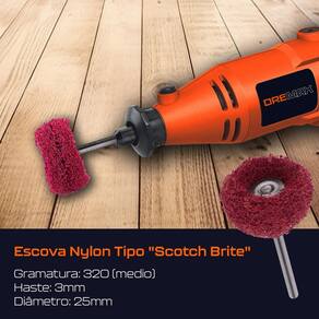 Kit 5 Escovas de Polimento Nylon 25mm Grão 320 para Micro Retíficas Dremax - Marca: Dremax - Referência: EPN003 - Jogo exclusivo com 5 escovas - Cor: Vermelho - Material: Fibra do nylon - Gramatura: Grão 320 médio - Diâmetro da escova: 25mm 1 Pol. - Espessura aproximada da escova: 14mm - Diâmetro da haste: 3mm 1/8 Pol. - Comprimento: 43mm - Modelo exclusivo com 3 camadas de espessura, mas eficaz e durável que os concorrentes - Escova tipo Scotch Brite - Velocidade de trabalho recomendada: 2.000 a 12.000rpm - As escovas almofadas de polimento são usadas em polimento madeira, metal, polimento de pedra etc. , gravura, moagem, lixamento e limpeza - Ideal para limpeza, desbaste e polimento de todos os tipos de joias e metais preciosos. - Acessório indicado para joalheiros, serralheiros, armeiros, técnicos, colecionadores de moedas, arqueólogos, estudantes, etc. - Indicado para todas as marcas de micro retíficas, como Dremel, Charbs, Einhell, Black+Decker, Dremax, Mondial, Vonder, Titanium, Western, Ingco, Gamma, Wesco, etc. - : 90 dias contra defeitos de fabricação A DREMAX é a primeira e única marca brasileira dedicada exclusivamente às micro retíficas, acessórios e acoplamentos para esta indispensável ferramenta. Seja para trabalhos de precisão, artesanato, modelagem ou reparos, a DREMAX tem o produto certo para você.