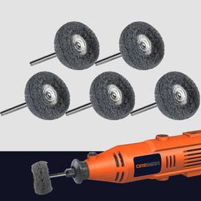 Kit com 5 Escovas de Polimento Nylon 25mm Grão 800 para Micro Retíficas Dremax