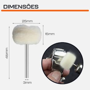 Kit 5 Escovas Lã de Algodão Disco de Feltro 25mm com Haste 3mm para Polir com Micro Retíficas Dremax - Marca: Dremax - jogo Exclusivo com 5 unidades - Diâmetro 25mm 1 Pol. - Espessura da cabeça: 15mm - Diâmetro da haste: 3mm - Comprimento total: 46cm - Uso em micro retíficas de qualquer marca com pinça de 3mm - Indicada para polimento de metais ferrosos ou não ferrosos, aço, aço inoxidável, alumínio, bronze, cobre, latão e plástico em geral - Proporciona maior rendimento durante o trabalho - : 90 dias contra defeitos de fabricação A DREMAX é a primeira e única marca brasileira dedicada exclusivamente às micro retíficas, acessórios e acoplamentos para esta indispensável ferramenta. Seja para trabalhos de precisão, artesanato, modelagem ou reparos, a DREMAX tem o produto certo para você. Marca: Não Informado Ean: 7734625993753