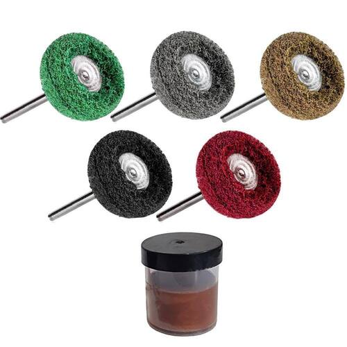 Kit 5 Escova de Polimento Nylon 25mm Grãos 120 a 800 e Pasta para Polir para Micro Retíficas Dremax