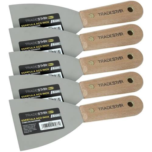 Kit 5 Espátula 8 Cm Aço Inox Multiuso Para Chapa Gesso Drywal Kit 05 Espátulas Inox Tradestar com Cabo de Madeira - 8 cm Apresentamos a Espátula Inox Tradestar com Cabo de Madeira de 8 cm, uma combinação de precisão e resistência. Parte da linha premium da Tradestar, esta espátula se destaca por sua robustez e design ergonômico, sendo uma ferramenta indispensável para profissionais e entusiastas. Características principais: Lâmina em Aço Inoxidável: Garantindo uma resistência à corrosão e uma vida útil prolongada, a lâmina em inox da Tradestar é projetada para enfrentar as demandas de projetos intensos sem desgaste. Cabo de Madeira Premium: O cabo de madeira proporciona um agarre firme e confortável, além de trazer um toque estético refinado à ferramenta. Tamanho Versátil: Com 8 cm de largura, esta espátula é excepcional para uma variedade de aplicações, desde detalhamento até tarefas gerais. Padrão Tradestar: A confiança que só a marca Tradestar pode oferecer, atestando que cada espátula é fabricada com o mais alto padrão de qualidade. Aplicações sugeridas: Espalhar e nivelar massas e adesivos com precisão. Alisamento de superfícies para acabamentos perfeitos. Tarefas que exigem durabilidade e resistência à umidade. Trabalhos de decoração e restauração. Com a Espátula Inox Tradestar com Cabo de Madeira de 8 cm, você estará equipado com uma ferramenta que não só performa excepcionalmente, mas também resiste ao teste do tempo. Escolha Tradestar e invista em qualidade inigualável. DETALHES IMPORTANTES Confira algumas vantagens de comprar com a JJC FERRAMENTAS: 90 dias após a compra. Imagens meramente ilustrativas As tonalidades da cor do produto podem sofrer alterações de acordo com a tela que estiver usando para visualização. do vendedor: 90 dias Marca: Não Informado