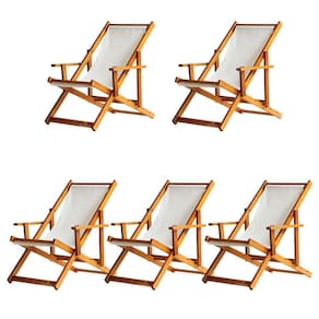 Kit 5 Espreguiçadeira Preguiçosa Dobrável Mel Cb-branco 5 ESPREGUIÇADEIRAS ENVERNIZADA MEL C/BSabe aquele final de tarde que você tanto espera para tirar um descanso merecido? Ou aquela viagem para a praia programada a meses com a família? Pois é, nossas cadeiras espreguiçadeira serve exatamente para esses momentos, com várias opções de cores, os tecidos além de charmosos são hidro-repelentes e se adequam a qualquer ambiente, facilmente removíveis para higienização.Estrutura 100% de madeira maciça de ótima qualidade, a espreguiçadeira é totalmente dobrável e reclinável (4 posições de ângulo), com descanso para braço, sendo possível montar invertida sem o encosto de braço, perfeita para seu lazer em todos os ambientes, esse é o item que definitivamente não pode faltar na vida de quem de fato, quer aproveitar bons momentos! FICHA TÉCNICA DO PRODUTO:04 Níveis de Regulagem de Altura;Tecido Reforçado;Fabricada em Madeira Maciça Pinus;Peso aproximado: 7,5 Kg;Suporta aproximadamente 120 kg;Cor da Madeira: Mel Dimensões aproximadas do Produto:Altura 1: 69 cm;Altura 2: 82 cm;Altura 3: 91 cm;Altura 4: 100 cm;Profundidade: 105 cm. Dimensão aproximada total:Comprimento: 135 cm;Largura: 66 cm; Informações Adicionais:Garantia: 90 dias contra defeitos de fabricação.Acompanha 5 cadeiras Obs. A cor pode variar da foto conforme a tonalidade da madeira e iluminação.. !! Marca: Brasil Móveis