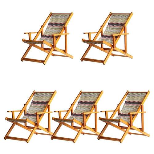 Kit 5 Espreguiçadeira Preguiçosa Dobrável Mel Cb-chev Vermelho 5 ESPREGUIÇADEIRAS ENVERNIZADA MEL C/BSabe aquele final de tarde que você tanto espera para tirar um descanso merecido? Ou aquela viagem para a praia programada a meses com a família? Pois é, nossas cadeiras espreguiçadeira serve exatamente para esses momentos, com várias opções de cores, os tecidos além de charmosos são hidro-repelentes e se adequam a qualquer ambiente, facilmente removíveis para higienização.Estrutura 100% de madeira maciça de ótima qualidade, a espreguiçadeira é totalmente dobrável e reclinável (4 posições de ângulo), com descanso para braço, sendo possível montar invertida sem o encosto de braço, perfeita para seu lazer em todos os ambientes, esse é o item que definitivamente não pode faltar na vida de quem de fato, quer aproveitar bons momentos! FICHA TÉCNICA DO PRODUTO:04 Níveis de Regulagem de Altura;Tecido Reforçado;Fabricada em Madeira Maciça Pinus;Peso aproximado: 7,5 Kg;Suporta aproximadamente 120 kg;Cor da Madeira: Mel Dimensões aproximadas do Produto:Altura 1: 69 cm;Altura 2: 82 cm;Altura 3: 91 cm;Altura 4: 100 cm;Profundidade: 105 cm. Dimensão aproximada total:Comprimento: 135 cm;Largura: 66 cm; Informações Adicionais:Garantia: 90 dias contra defeitos de fabricação.Acompanha 5 cadeiras Obs. A cor pode variar da foto conforme a tonalidade da madeira e iluminação.. !! Marca: Brasil Móveis