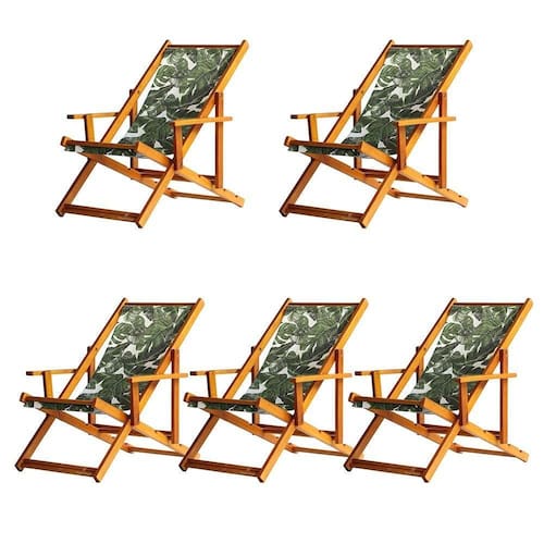 Kit 5 Espreguiçadeira Preguiçosa Dobrável Mel Cb-folhas Verdes 5 ESPREGUIÇADEIRAS ENVERNIZADA MEL C/B Há meia década no mercado, a MHM Móveis Brasil vem se destacando no ramo de móveis em todo o Brasil. Isso se dá por conta de seu compromisso e responsabilidade social com seus clientes, buscando sempre usar materiais de qualidade para oferecer um melhor produto trazendo assim, mais requinte e sofisticação para qualquer ambiente. Além de uma equipe de produção especializada e experiente, nós possuímos um time de colaboradores voltados 100% para o atendimento. Sabe aquele final de tarde que você tanto espera para tirar um descanso merecido? Ou aquela viagem para a praia programada a meses com a família? Pois é, nossas cadeiras espreguiçadeira serve exatamente para esses momentos, com várias opções de cores, os tecidos além de charmosos são hidro-repelentes e se adequam a qualquer ambiente, facilmente removíveis para higienização.Estrutura 100% de madeira maciça natural de ótima qualidade, a espreguiçadeira é totalmente dobrável e reclinável (4 posições de ângulo), com descanso para braço, sendo possível montar invertida sem o encosto de braço, perfeita para seu lazer em todos os ambientes, esse é o item que definitivamente não pode faltar na vida de quem de fato, quer aproveitar bons momentos! FICHA TÉCNICA DO PRODUTO:04 Níveis de Regulagem de Altura;Tecido Reforçado;Fabricada em Madeira Maciça Pinus;Peso aproximado: 7,5 Kg;Suporta aproximadamente 120 kg;Cor da Madeira: Mel Dimensões aproximadas do Produto:Altura 1: 69 cm;Altura 2: 82 cm;Altura 3: 91 cm;Altura 4: 100 cm;Profundidade: 105 cm. Dimensão aproximada total:Comprimento: 135 cm;Largura: 66 cm; Informações Adicionais:Garantia: 90 dias contra defeitos de fabricação.Acompanha 5 cadeiras Obs. A cor pode variar da foto conforme a tonalidade da madeira e iluminação.Conferir as medidas do produto antes de realizar a compra, para evitar imprevistos no momento da entrega. Nossas entregas não incluem subida de escadas, elevador ou içamento dos produtos. Em caso de possíveis dúvidas, basta entrar em contato com nossa equipe, que esclarecemos tudo de forma simples, rápida e eficaz.A MHM Móveis Brasil agradece à preferência e ficamos imensamente gratos em poder atendê-lo(a), esperamos ansiosamente por sua compra!!! Marca: Brasil Móveis