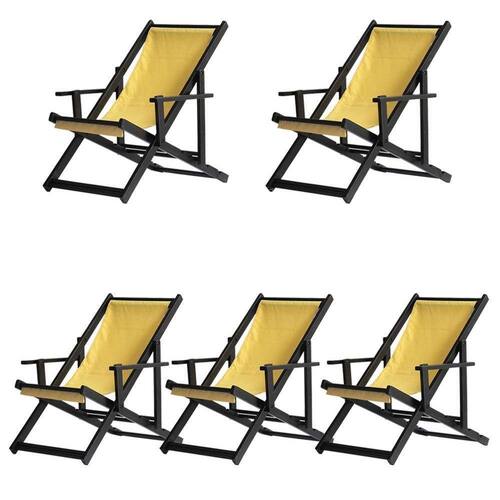 Kit 5 Espreguiçadeiras Dobrável Black Cb-amarelo 5 ESPREGUIÇADEIRAS ENVERNIZADAS BLACK C/BSabe aquele final de tarde que você tanto espera para tirar um descanso merecido? Ou aquela viagem para a praia programada a meses com a família? Pois é, nossas cadeiras espreguiçadeira serve exatamente para esses momentos, com várias opções de cores, os tecidos além de charmosos são hidro-repelentes e se adequam a qualquer ambiente, facilmente removíveis para higienização.Estrutura 100% de madeira maciça e verniz especial, que garante sua qualidade e durabilidade, a espreguiçadeira é totalmente dobrável e reclinável (4 posições de ângulo), com descanso para braço, sendo possível montar invertida sem o encosto de braço, perfeita para seu lazer em todos os ambientes, seja ele externo ou interno, esse é o item que definitivamente não pode faltar na vida de quem de fato, quer aproveitar bons momentos! FICHA TÉCNICA DO PRODUTO:04 Níveis de Regulagem de Altura;Tecido Reforçado;Fabricada em Madeira Maciça Pinus;Peso aproximado: 7,5 Kg;Suporta aproximadamente 120 kg;Cor da Madeira: Preta Dimensões aproximadas do Produto:Altura 1: 69 cm;Altura 2: 82 cm;Altura 3: 91 cm;Altura 4: 100 cm;Profundidade: 105 cm. Dimensão aproximada total:Comprimento: 135 cm;Largura: 66 cm; Informações Adicionais:Garantia: 90 dias contra defeitos de fabricação.Acompanha 5 cadeiras Obs. A cor pode variar da foto conforme a tonalidade da madeira e iluminação.. !! Marca: Brasil Móveis