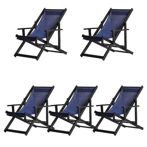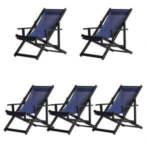 Kit 5 Espreguiçadeiras Dobrável Black Cb-azul Marinho 5 ESPREGUIÇADEIRAS ENVERNIZADAS BLACK C/BSabe aquele final de tarde que você tanto espera para tirar um descanso merecido? Ou aquela viagem para a praia programada a meses com a família? Pois é, nossas cadeiras espreguiçadeira serve exatamente para esses momentos, com várias opções de cores, os tecidos além de charmosos são hidro-repelentes e se adequam a qualquer ambiente, facilmente removíveis para higienização.Estrutura 100% de madeira maciça e verniz especial, que garante sua qualidade e durabilidade, a espreguiçadeira é totalmente dobrável e reclinável (4 posições de ângulo), com descanso para braço, sendo possível montar invertida sem o encosto de braço, perfeita para seu lazer em todos os ambientes, seja ele externo ou interno, esse é o item que definitivamente não pode faltar na vida de quem de fato, quer aproveitar bons momentos! FICHA TÉCNICA DO PRODUTO:04 Níveis de Regulagem de Altura;Tecido Reforçado;Fabricada em Madeira Maciça Pinus;Peso aproximado: 7,5 Kg;Suporta aproximadamente 120 kg;Cor da Madeira: Preta Dimensões aproximadas do Produto:Altura 1: 69 cm;Altura 2: 82 cm;Altura 3: 91 cm;Altura 4: 100 cm;Profundidade: 105 cm. Dimensão aproximada total:Comprimento: 135 cm;Largura: 66 cm; Informações Adicionais:Garantia: 90 dias contra defeitos de fabricação.Acompanha 5 cadeiras Obs. A cor pode variar da foto conforme a tonalidade da madeira e iluminação.. !! Marca: Brasil Móveis
