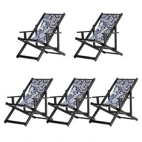 Kit 5 Espreguiçadeiras Dobrável Black Cb-folhas Brancas 5 ESPREGUIÇADEIRAS ENVERNIZADAS BLACK C/BSabe aquele final de tarde que você tanto espera para tirar um descanso merecido? Ou aquela viagem para a praia programada a meses com a família? Pois é, nossas cadeiras espreguiçadeira serve exatamente para esses momentos, com várias opções de cores, os tecidos além de charmosos são hidro-repelentes e se adequam a qualquer ambiente, facilmente removíveis para higienização.Estrutura 100% de madeira maciça e verniz especial, que garante sua qualidade e durabilidade, a espreguiçadeira é totalmente dobrável e reclinável (4 posições de ângulo), com descanso para braço, sendo possível montar invertida sem o encosto de braço, perfeita para seu lazer em todos os ambientes, seja ele externo ou interno, esse é o item que definitivamente não pode faltar na vida de quem de fato, quer aproveitar bons momentos! FICHA TÉCNICA DO PRODUTO:04 Níveis de Regulagem de Altura;Tecido Reforçado;Fabricada em Madeira Maciça Pinus;Peso aproximado: 7,5 Kg;Suporta aproximadamente 120 kg;Cor da Madeira: Preta Dimensões aproximadas do Produto:Altura 1: 69 cm;Altura 2: 82 cm;Altura 3: 91 cm;Altura 4: 100 cm;Profundidade: 105 cm. Dimensão aproximada total:Comprimento: 135 cm;Largura: 66 cm; Informações Adicionais:Garantia: 90 dias contra defeitos de fabricação.Acompanha 5 cadeiras Obs. A cor pode variar da foto conforme a tonalidade da madeira e iluminação.. !! Marca: Brasil Móveis