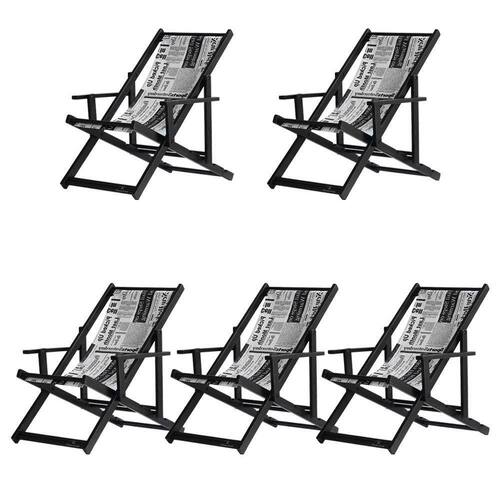 Kit 5 Espreguiçadeiras Dobrável Black Cb-jornal 5 ESPREGUIÇADEIRAS ENVERNIZADAS BLACK C/BSabe aquele final de tarde que você tanto espera para tirar um descanso merecido? Ou aquela viagem para a praia programada a meses com a família? Pois é, nossas cadeiras espreguiçadeira serve exatamente para esses momentos, com várias opções de cores, os tecidos além de charmosos são hidro-repelentes e se adequam a qualquer ambiente, facilmente removíveis para higienização.Estrutura 100% de madeira maciça e verniz especial, que garante sua qualidade e durabilidade, a espreguiçadeira é totalmente dobrável e reclinável (4 posições de ângulo), com descanso para braço, sendo possível montar invertida sem o encosto de braço, perfeita para seu lazer em todos os ambientes, seja ele externo ou interno, esse é o item que definitivamente não pode faltar na vida de quem de fato, quer aproveitar bons momentos! FICHA TÉCNICA DO PRODUTO:04 Níveis de Regulagem de Altura;Tecido Reforçado;Fabricada em Madeira Maciça Pinus;Peso aproximado: 7,5 Kg;Suporta aproximadamente 120 kg;Cor da Madeira: Preta Dimensões aproximadas do Produto:Altura 1: 69 cm;Altura 2: 82 cm;Altura 3: 91 cm;Altura 4: 100 cm;Profundidade: 105 cm. Dimensão aproximada total:Comprimento: 135 cm;Largura: 66 cm; Informações Adicionais:Garantia: 90 dias contra defeitos de fabricação.Acompanha 5 cadeiras Obs. A cor pode variar da foto conforme a tonalidade da madeira e iluminação.. !! Marca: Brasil Móveis