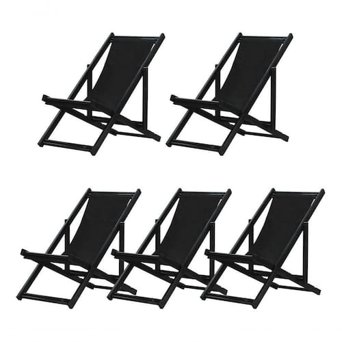 Kit 5 Espreguiçadeiras Dobrável Black Cb-preto 5 ESPREGUIÇADEIRAS ENVERNIZADAS BLACK C/BSabe aquele final de tarde que você tanto espera para tirar um descanso merecido? Ou aquela viagem para a praia programada a meses com a família? Pois é, nossas cadeiras espreguiçadeira serve exatamente para esses momentos, com várias opções de cores, os tecidos além de charmosos são hidro-repelentes e se adequam a qualquer ambiente, facilmente removíveis para higienização.Estrutura 100% de madeira maciça e verniz especial, que garante sua qualidade e durabilidade, a espreguiçadeira é totalmente dobrável e reclinável (4 posições de ângulo), com descanso para braço, sendo possível montar invertida sem o encosto de braço, perfeita para seu lazer em todos os ambientes, seja ele externo ou interno, esse é o item que definitivamente não pode faltar na vida de quem de fato, quer aproveitar bons momentos! FICHA TÉCNICA DO PRODUTO:04 Níveis de Regulagem de Altura;Tecido Reforçado;Fabricada em Madeira Maciça Pinus;Peso aproximado: 7,5 Kg;Suporta aproximadamente 120 kg;Cor da Madeira: Preta Dimensões aproximadas do Produto:Altura 1: 69 cm;Altura 2: 82 cm;Altura 3: 91 cm;Altura 4: 100 cm;Profundidade: 105 cm. Dimensão aproximada total:Comprimento: 135 cm;Largura: 66 cm; Informações Adicionais:Garantia: 90 dias contra defeitos de fabricação.Acompanha 5 cadeiras Obs. A cor pode variar da foto conforme a tonalidade da madeira e iluminação.. !! Marca: Brasil Móveis