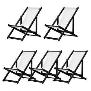 Kit 5 Espreguiçadeiras Dobrável Black Sb-branco 5 ESPREGUIÇADEIRAS ENVERNIZADAS BLACK S/BSabe aquele final de tarde que você tanto espera para tirar um descanso merecido? Ou aquela viagem para a praia programada a meses com a família? Pois é, nossas cadeiras espreguiçadeira serve exatamente para esses momentos, com várias opções de cores, os tecidos além de charmosos são hidro-repelentes e se adequam a qualquer ambiente, facilmente removíveis para higienização.Estrutura 100% de madeira maciça e verniz especial, que garante sua qualidade e durabilidade, a espreguiçadeira é totalmente dobrável e reclinável (4 posições de ângulo), perfeita para seu lazer em todos os ambientes, seja ele externo ou interno, esse é o item que definitivamente não pode faltar na vida de quem de fato, quer aproveitar bons momentos! FICHA TÉCNICA DO PRODUTO:04 Níveis de Regulagem de Altura;Tecido Reforçado;Fabricada em Madeira Maciça Pinus;Peso aproximado: 7,5 Kg;Suporta aproximadamente 120 kg;Cor da Madeira: PretaAcabamento: Envernizada Dimensões aproximadas do Produto:Altura 1: 69 cm;Altura 2: 82 cm;Altura 3: 91 cm;Altura 4: 100 cm;Profundidade: 105 cm. Dimensão aproximada total:Comprimento: 135 cm;Largura: 60 cm; Informações Adicionais:Garantia: 90 dias contra defeitos de fabricação.Acompanha 5 cadeiras Obs. A cor pode variar da foto conforme a tonalidade da madeira e iluminação..