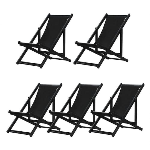 Kit 5 Espreguiçadeiras Dobrável Black Sb-preto 5 ESPREGUIÇADEIRAS ENVERNIZADAS BLACK S/BSabe aquele final de tarde que você tanto espera para tirar um descanso merecido? Ou aquela viagem para a praia programada a meses com a família? Pois é, nossas cadeiras espreguiçadeira serve exatamente para esses momentos, com várias opções de cores, os tecidos além de charmosos são hidro-repelentes e se adequam a qualquer ambiente, facilmente removíveis para higienização.Estrutura 100% de madeira maciça e verniz especial, que garante sua qualidade e durabilidade, a espreguiçadeira é totalmente dobrável e reclinável (4 posições de ângulo), perfeita para seu lazer em todos os ambientes, seja ele externo ou interno, esse é o item que definitivamente não pode faltar na vida de quem de fato, quer aproveitar bons momentos! FICHA TÉCNICA DO PRODUTO:04 Níveis de Regulagem de Altura;Tecido Reforçado;Fabricada em Madeira Maciça Pinus;Peso aproximado: 7,5 Kg;Suporta aproximadamente 120 kg;Cor da Madeira: PretaAcabamento: Envernizada Dimensões aproximadas do Produto:Altura 1: 69 cm;Altura 2: 82 cm;Altura 3: 91 cm;Altura 4: 100 cm;Profundidade: 105 cm. Dimensão aproximada total:Comprimento: 135 cm;Largura: 60 cm; Informações Adicionais:Garantia: 90 dias contra defeitos de fabricação.Acompanha 5 cadeiras Obs. A cor pode variar da foto conforme a tonalidade da madeira e iluminação..
