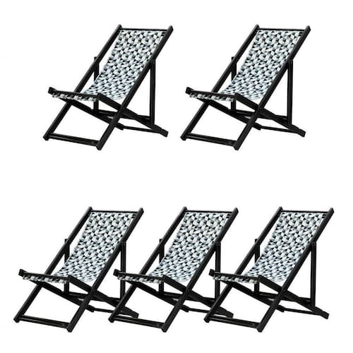 Kit 5 Espreguiçadeiras Dobrável Black Sb-triang Preto 5 ESPREGUIÇADEIRAS ENVERNIZADAS BLACK S/BSabe aquele final de tarde que você tanto espera para tirar um descanso merecido? Ou aquela viagem para a praia programada a meses com a família? Pois é, nossas cadeiras espreguiçadeira serve exatamente para esses momentos, com várias opções de cores, os tecidos além de charmosos são hidro-repelentes e se adequam a qualquer ambiente, facilmente removíveis para higienização.Estrutura 100% de madeira maciça e verniz especial, que garante sua qualidade e durabilidade, a espreguiçadeira é totalmente dobrável e reclinável (4 posições de ângulo), perfeita para seu lazer em todos os ambientes, seja ele externo ou interno, esse é o item que definitivamente não pode faltar na vida de quem de fato, quer aproveitar bons momentos! FICHA TÉCNICA DO PRODUTO:04 Níveis de Regulagem de Altura;Tecido Reforçado;Fabricada em Madeira Maciça Pinus;Peso aproximado: 7,5 Kg;Suporta aproximadamente 120 kg;Cor da Madeira: PretaAcabamento: Envernizada Dimensões aproximadas do Produto:Altura 1: 69 cm;Altura 2: 82 cm;Altura 3: 91 cm;Altura 4: 100 cm;Profundidade: 105 cm. Dimensão aproximada total:Comprimento: 135 cm;Largura: 60 cm; Informações Adicionais:Garantia: 90 dias contra defeitos de fabricação.Acompanha 5 cadeiras Obs. A cor pode variar da foto conforme a tonalidade da madeira e iluminação..