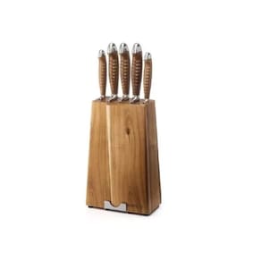 KIT 5 Facas mais 1 Cepo Faqueiro Mundial com Suporte Tablet - Faqueiro com cepo