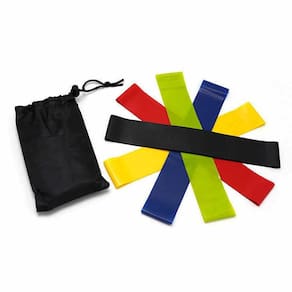 Kit com 5 faixas elásticas mini band para exercícios e alongamentos de membros inferiores e superiores. Ideal para fortalecer a articulação, tonificar os músculos e alongar todo o corpo.
