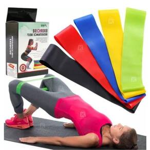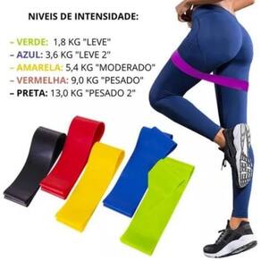 Kit com 5 Mini Bands Faixas Elásticas Este kit possui 5 faixas extensoras de resistencias para treinos individuais de fortalecimento e resistência. Exercícios Fitness, Musculação, Condicionamento Fisico, Recuperação de Lesões, Fisioterapia etc. Ideal para aprimorar a sua coordenação motora e e melhorar a sua performance funcional Alongamento e Flexibilidade. Força e Resistência Muscular. Detalhamento das cores e instruções de resistencia; VERDE – Super leve – 1,8kg, AMARELO - Leve - 3,6kg VERMELHO - Médio – 5,4kg AZUL - Pesado – 9kg PRETO - Super pesado – 13,6kg Conteudo da Embalagem: 01 case para guardar e transportar suas minibands. 05 Faixas Elásticas.
