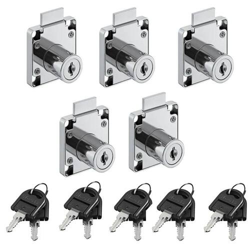 Fabricada em aço e com acabamento niquelado, este sistema possui seu corpo totalmente maciço. Assim, solução oferece mais segurança ao seu móvel. Seu fechamento feito por 6 pinos e apresenta até 120 combinações de chaves. O kit comercializado inclui fechadura + roseta + chapa-testa + chaves.