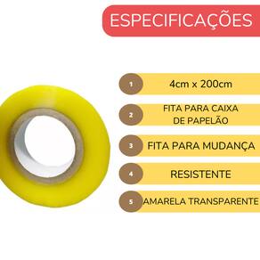 Kit 5 Fitas Adesiva Transparente Amarela 200 metros Embalar
