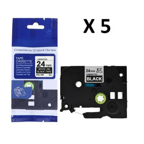 Kit 5 fitas compatível brother tze-355 etiqueta na cor preta com letras na cor branca