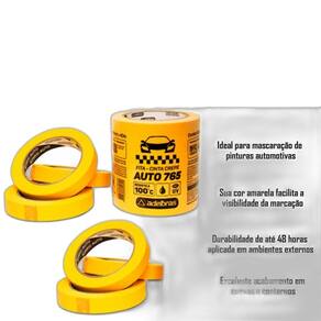 A fita crepe amarela da Adelbras é feita especialmente para mascaramento automotivo. Uso em estufa até 100C e também para secagem ao ar livre. Possui barreira UV para resistência aos raios ultravioleta e exposição ao sol por até 48 horas. O modelo de fita amarela automotiva anti UV possui ótima adesão, resistente a solventes e umidade, ótima fixação em superfícies metálicas, plásticas e borracha. Não deixa resíduo após a remoção. Disponível somente na cor Amarela.