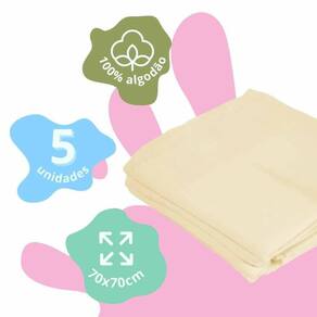 Principais Características: Pacote com 05 unidades de Fralda Cor: Amarelo Medida da Fralda: 70x70cm Composição: 100% Algodão macio e confortável Costurar a Bainha para maior durabilidade Tecido Duplo Extra absorvente ou seja, existe duas camadas para maior durabilidade Alta absorção Idade: A partir do primeiro dia de vida