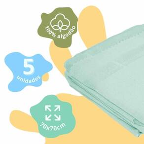 Principais Características: Pacote com 05 unidades de Fralda Cor: Verde Medida da Fralda: 70x70cm Composição: 100% Algodão macio e confortável Costurar a Bainha para maior durabilidade Tecido Duplo Extra absorvente ou seja, existe duas camadas para maior durabilidade Alta absorção Idade: A partir do primeiro dia de vida