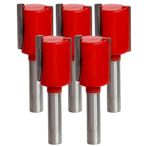 Kit com 5 Fresas Retas 16mm Haste 6mm Corte Duplo para Madeira Dentes de Metal Duro