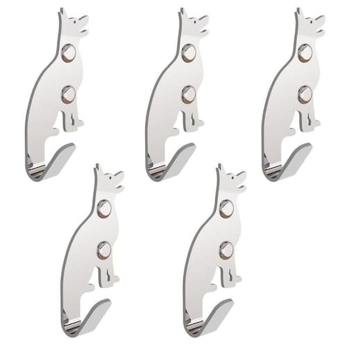 BENEFÍCIOS Design exclusivo no formato de Cachorro Gancho de aço com corte preciso feito à laser de última geração Recorte das bordas com extrema precisão Durabilidade maior devido a resistência do material utilizado Acompanha acabamento para esconder a cabeça dos parafusos de fixação Maior resistência de peso nos ganchos de Cachorro Nível de instalação: Fácil Modo de instalar: Furar a parede e parafusar os ganchos.