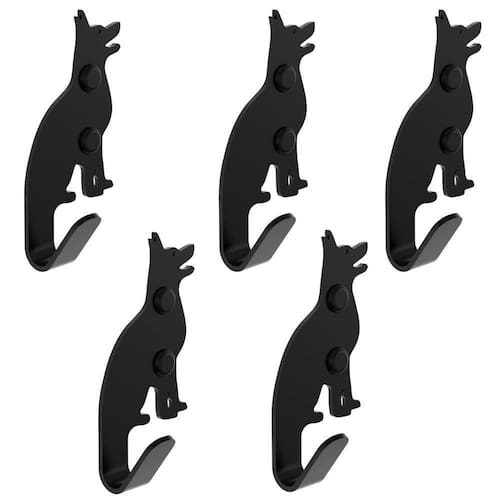 BENEFÍCIOS Design exclusivo no formato de Cachorro Gancho de aço com corte preciso feito à laser de última geração Recorte das bordas com extrema precisão Durabilidade maior devido a resistência do material utilizado Acompanha acabamento para esconder a cabeça dos parafusos de fixação Maior resistência de peso nos ganchos de Cachorro Nível de instalação: Fácil Modo de instalar: Furar a parede e parafusar os ganchos.