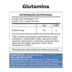 Kit 5 Glutamina em Pó Ocean Drop Vegano 250g A Glutamina é um aminoácido essencial, conhecido por suas funções em várias áreas do organismo, como imunidade, saúde intestinal e recuperação de lesões. Embora o corpo produza glutamina naturalmente, em situações de doenças, lesões ou alto desgaste físico, é necessário um suplemento adicional. Modo de consumo: - Sugere-se diluir 1 colher de chá aproximadamente 5g em 200ml de água ou bebida de preferência. - Ingerir entre as refeições ou 30 minutos antes do treino, ou conforme recomendação . - Produto com duração de 2 meses. Composição: - L-glutamina em pó. - NÃO CONTÉM GLÚTEN. Indicação: - Saúde intestinal. - Síntese proteica. - Imunidade. Contraindicação: - Este produto é indicado para o grupo populacional acima de 19 anos. - Não deve ser consumido por gestantes, lactantes e crianças. - Este produto não é um . Marca: Não Informado Ean: 7908609532508