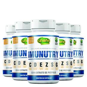 Kit 5 imunutry zinco, selênio, glutamina, própolis e vitaminas c, d e e unilife 60 cápsulas Desenvolvido a partir de vitamina c 500 mg, vitamina d3 2.000 ui, vitamina e 200 ui, zinco 28 mg, selênio 34 mcg, glutamina 222mg e extrato de própolis, com cápsula vegetal gelatina vegetal e água , o produto é livre de glúten e lactose e está disponível na versão: 60 cápsulas. Você o encontra nas melhores lojas de produtos naturais/farmácias ou e-commerces lojas virtuais . Modo de ingestão: sugere-se a ingestão de 1 cápsula 2 vezes ao dia. Ingerir com líquido. Peso total da cápsula: 700mg 500 mg de vitamina c, 2.000 ui de vitamina d3, 200 ui de vitamina e, 28 mg de zinco, 34 mcg de selênio e 222 mg de glutamina na porção de 2 cápsulas Marca: Não Informado Ean: 7908609503652