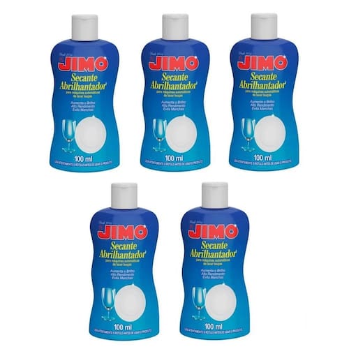 JIMO SECANTE ABRILHANTADOR potencializa o processo de secagem das louças, evitando possíveis manchas e deixando-as com um brilho mais intenso.