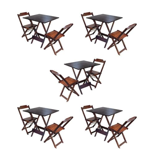 Kit 5 Jogos De Mesa Dobravel Com 2 Cadeiras De Madeira 70x70 Para Restaurante E Bar - Imbuia