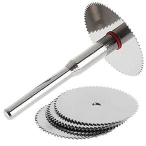 - Marca: Dremax - Kit esclusivo com 5 lâminas e haste - Material: Aço Inox - Diâmetro: 25mm 1 Pol. - Espessura: 0,8mm - Número de dentes: 80 - Diâmetro do furo: 2mm - A lâmina de serra circular é feita de aço inoxidável de alta qualidade, durável, com baixo desgaste e boa resistência ao calor - A tecnologia antivibração reduz o ruído e prolonga a vida útil do corte - Ideal para o corte de materiais duros como madeira, plásticos, laminados, alumínio, etc - Indicado para uso com micro retíficas de qualquer marca Dremel, Charbs, etc - Adequado para uso em Carpintaria e artesanato - Para sua segurança, aperte bem o parafuso da haste - Velocidade máxima de operação: 20.000 rpm - Garantia: 90 dias