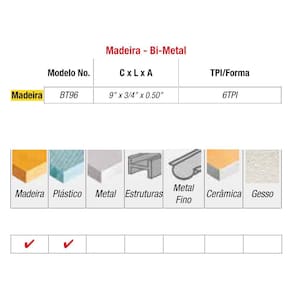 Lâmina Serra Sabre Corte de Madeira 23cm BT96 Starrett