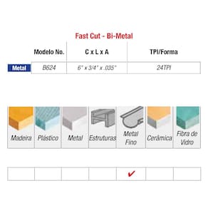 Lâmina Serra Sabre Corte de Metal 15cm B624 Starrett
