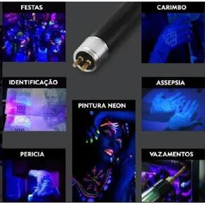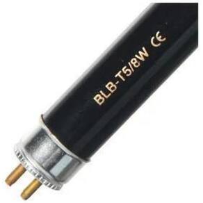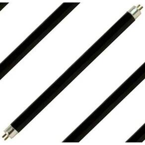 Kit contém 5 Lâmpadas fluorescentes T5 8W Luz Negra - Marca Foxlux Necessita de reator compatível para ser ligada a rede elétrica. -não acompanha reator. As lâmpadas de luz negra ou simplesmente luz negra, emitem radiação ultravioleta de pequena intensidade na parte do espectro próxima do violeta, sendo Utilizado em lanternas para verificar fluorescência e também com efeitos decorativos e bailes e vitrines. A radiação fraca destas lâmpadas não é prejudicial às pessoas e por isso não existem restrições quanto ao seu uso. Por outro lado as lâmpadas de ultravioleta de vidro transparentes são lâmpadas que emitem radiação ultravioleta de alta intensidade numa faixa mais ampla do espectro sendo utilizadas em diversos tipos de aplicações como bactericida, para apagar memórias EPROM, para gravação em placas foto sensíveis, etc. A radiação destas lâmpadas é perigosa para os nossos olhos, devendo portanto sempre serem utilizadas em locais vedados, nunca de modo que sua luz chegue até nossa vista. -base G5 -diâmetro 1,5cm -comprimento de ponta a ponta 31,2cm -comprimento apenas o bulbo 29cm Ean: 7898105771139