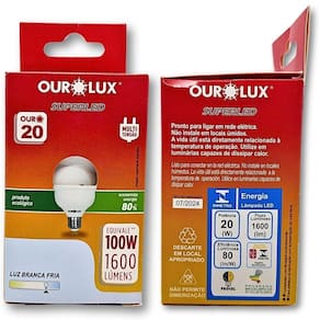 Kit 5 lampadas superled alta potencia ourolux 20w e27 6500k Lampada superled alta potencia ourolux t20w e27 6500k bivolt Descrição do produto Ilumine seu espaço com eficiência e estilo o superled alta potência ouro 20t 6500k é a escolha perfeita para quem busca uma iluminação potente e clara. Com uma temperatura de cor de 6500k, ele oferece uma luz branca fria que é ideal para ambientes de trabalho, escritórios, garagens e muito mais. Características - alta potência bivolt: proporciona uma iluminação intensa, garantindo visibilidade em grandes áreas. - longa durabilidade: vida útil prolongada, diminuindo a necessidade de trocas frequentes. - fácil instalação: design prático que se adapta a diferentes tipos de luminárias. - tamanho do produto: 10cm altura x 6cm largura x 7cm de diametro. - : 3 meses - composição: polímero termoplástico, metal e componentes eletrônicos. - certificação: inmetro - cor: branco frio - base de conexão: e27 - fluxo luminoso: 1600 lm - eficiência energética: 80 lm/w - potência: 20w Vantagens - longa vida útil: menos trocas e manutenção. - sustentável: menor impacto ambiental em comparação com lâmpadas convencionais. - design moderno: se adapta a qualquer decoração. Aplicações Perfeito para escritórios, lojas, fábricas, ou qualquer ambiente que necessite de iluminação clara e eficiente. Marca: Não Informado Ean: 7794233218853