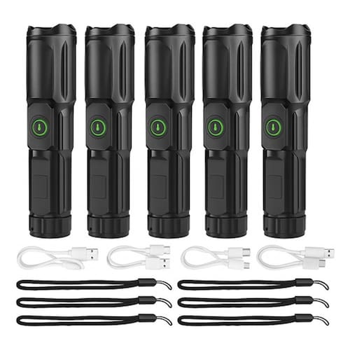 Kit com 5 Lanternas LED Recarregáveis USB – Potência e Segurança em Grande Estilo!