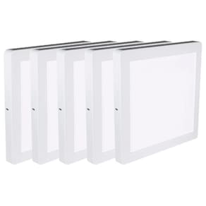 Potência: 18W. Temperatura: 6.500K. Lúmens: 1.040. Voltagem Bivolt: 127-220V. Dimensões: 210 x 210 x 24. Contém 5 Unidades Neste Kit.