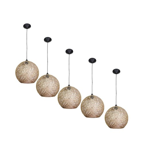 Kit com 5 luminária rústica de teto artesanal fibra natural 18 cm Luminária rústica de teto artesanal fibra natural 18 cm